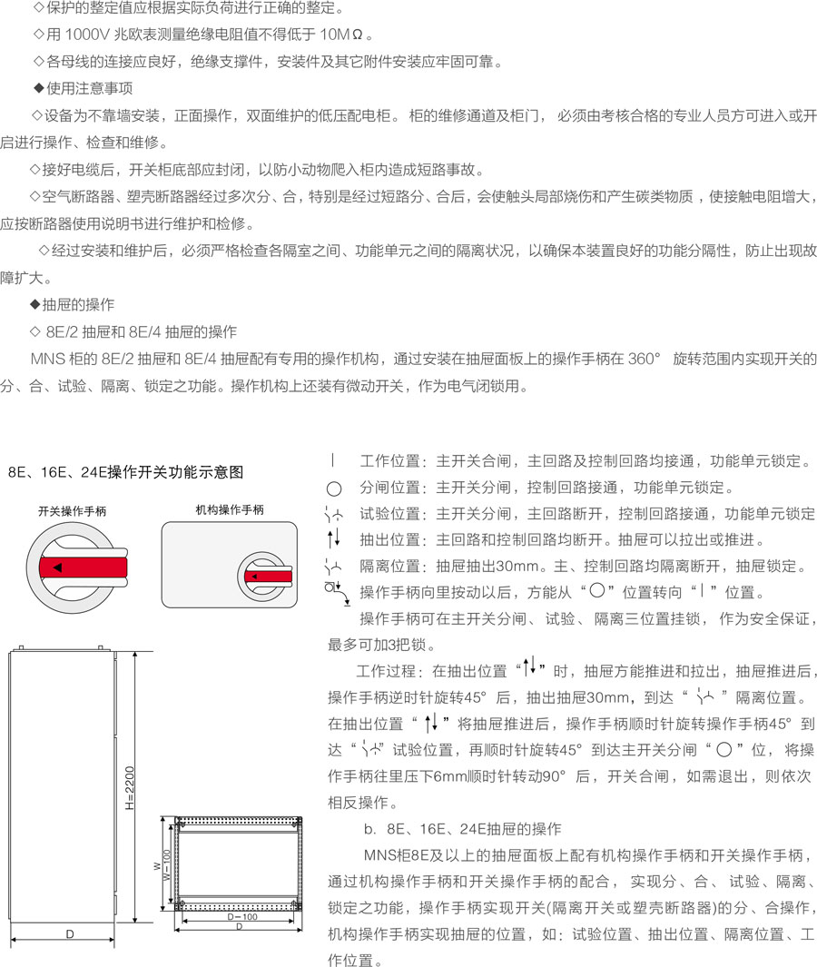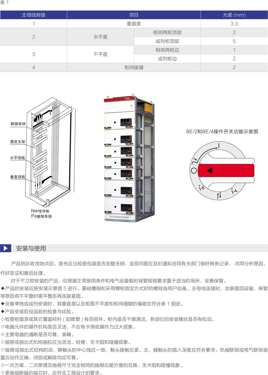 MNS型低压抽出式开关柜(以下称开关柜)是我公司参考了公司的MNS系列低压开关柜并加以综合改进后开发的,是目前国内较的低压抽出式开关设备。该产品由标准化的、成系列的模块组成,并且抽屉具有可靠的机械联锁装置,使用户在使用时更安全、更可靠。