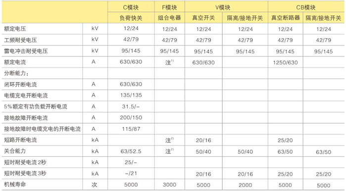 紧凑型SF6气体绝缘充气柜技术参数: