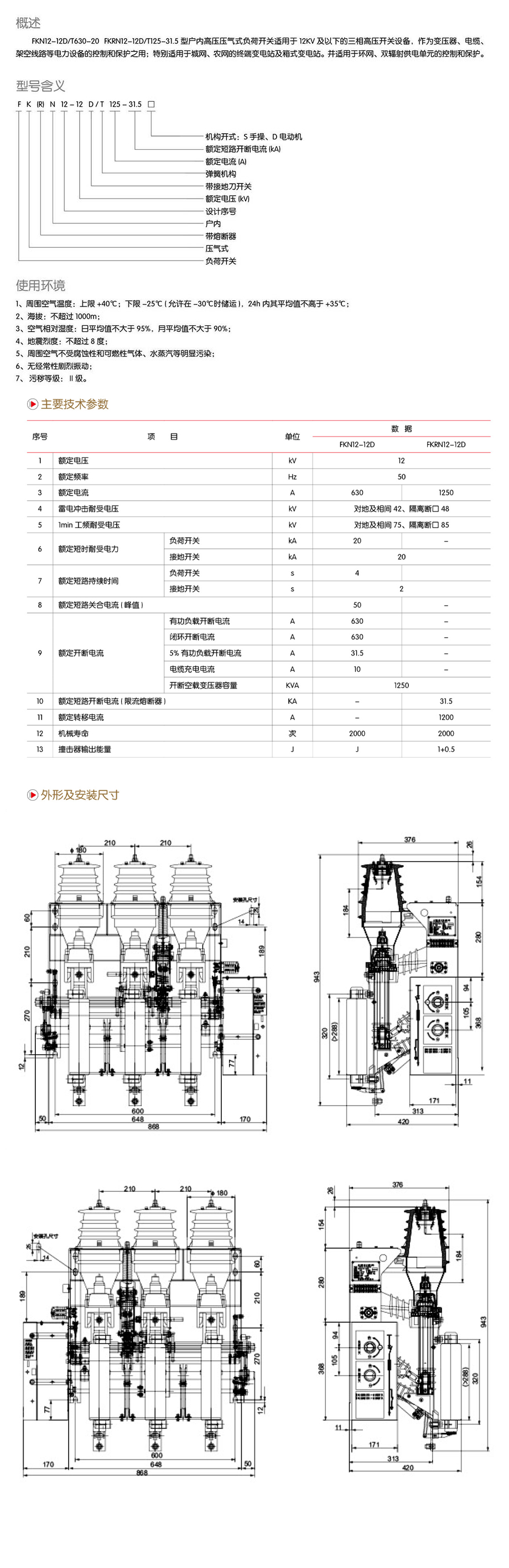 FKN12-12D/T630-20(FKRN12-12D/T125-31.5)户内高压压气式负荷开关
