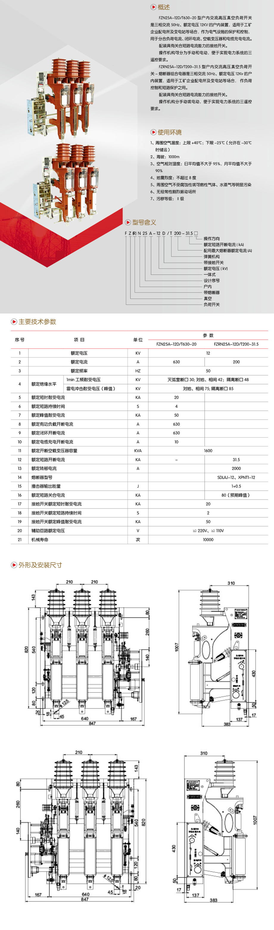 FZN25-12D/T630-20(FZRN25-12D/T200-31.5)户内高压真空负荷开关