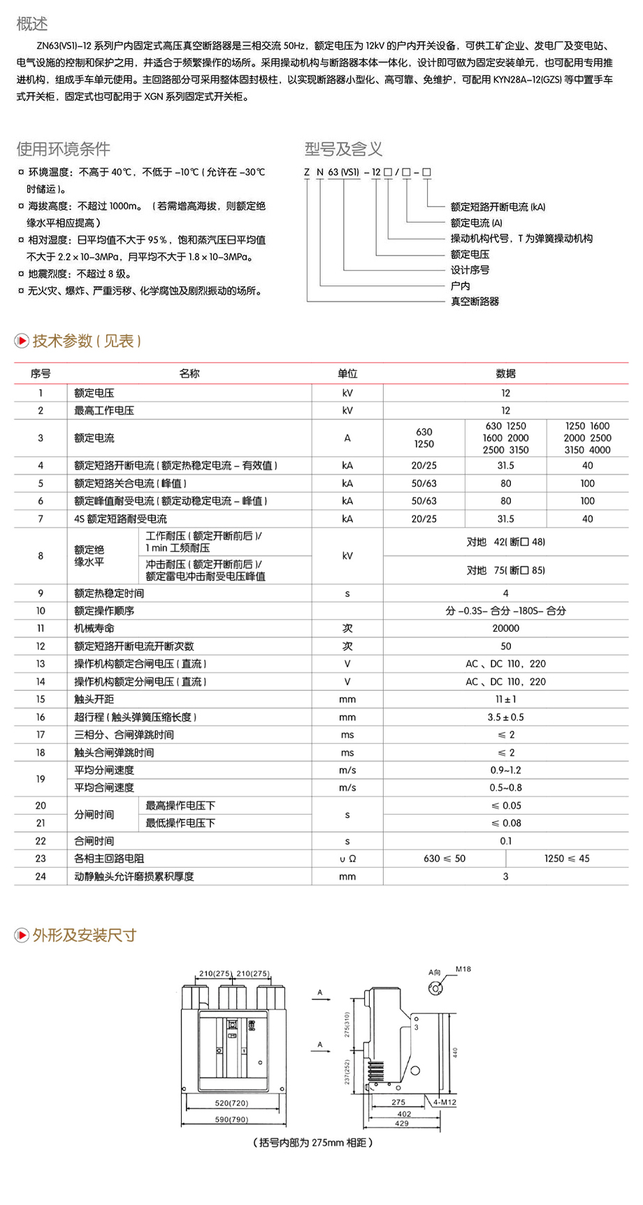 ZN63(VS1)-12户内高压侧装式真空断路器